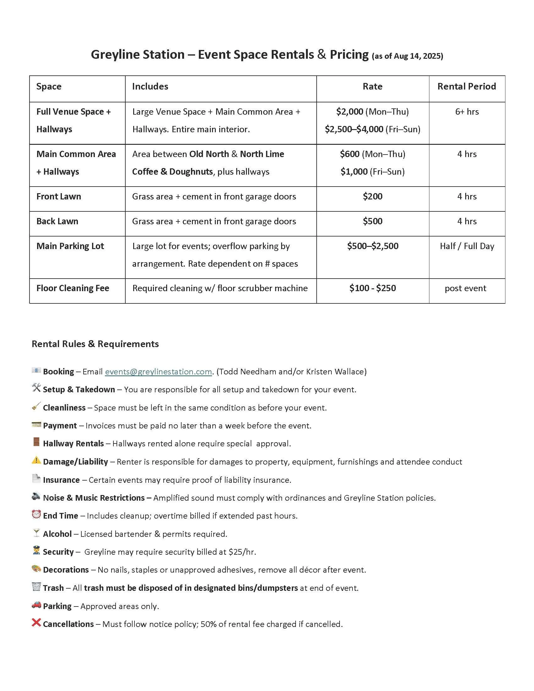 Enjoy open access to the market for your public events. This space is ideal for those looking to engage the public with up to 120 people. We’ve hosted events such as TV show premiers, school family nights, salsa dancing classes, etc. Please fill out the form linked below if you are interested in making Greyline the home for your event.